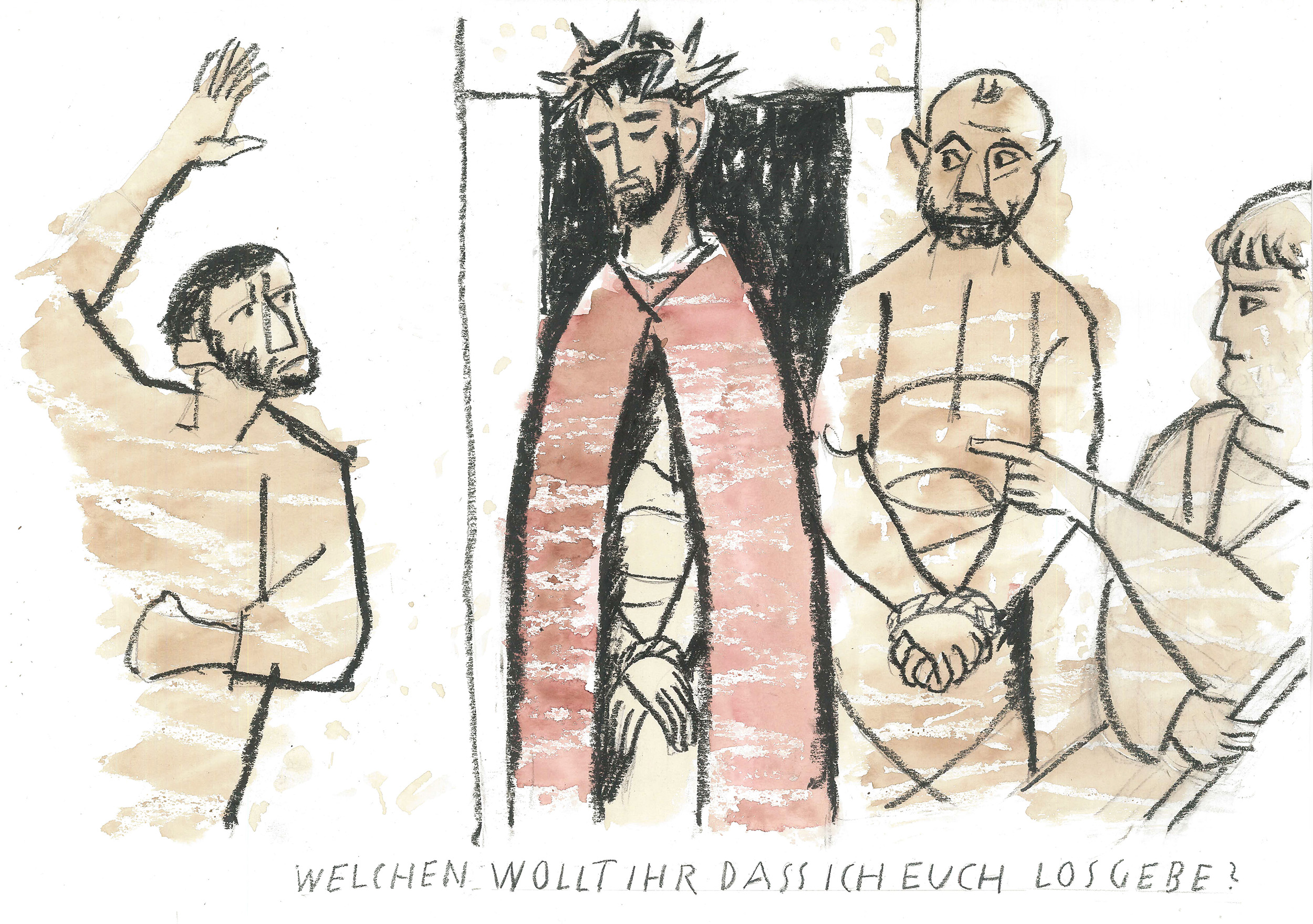 Jesus wird abgeführt, Jesus trägt sein Kreuz / Jesu Kreuzigung