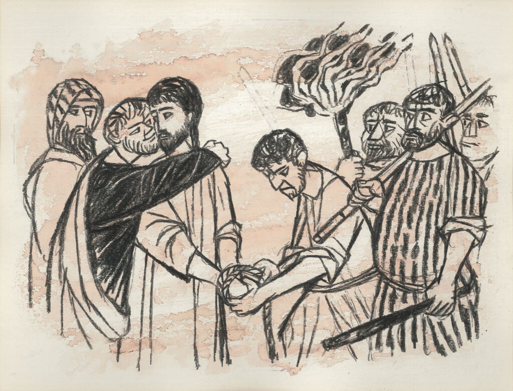 Der Judaskuss und die Gefangennahme Jesu (Mt 26,47-56; Mk 14,43-52; Lk 22,47-53)