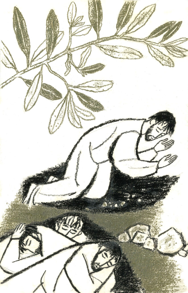 Jesus betet, die Jünger schlafen (Mt 26,36-46; Mk 14,32-42; Lk 22,40-46)