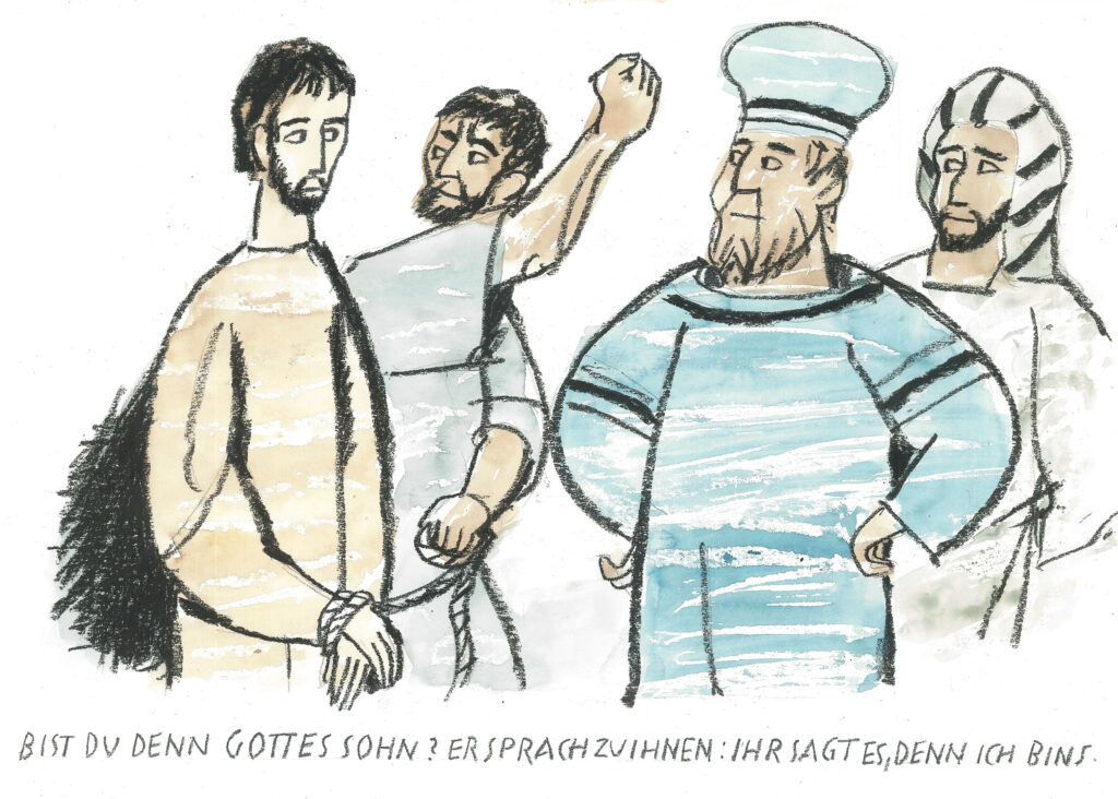 Jesus vor dem Hohen Rat (Mt 26,57-68; Mk 14,53-65; Lk 22,54-71)